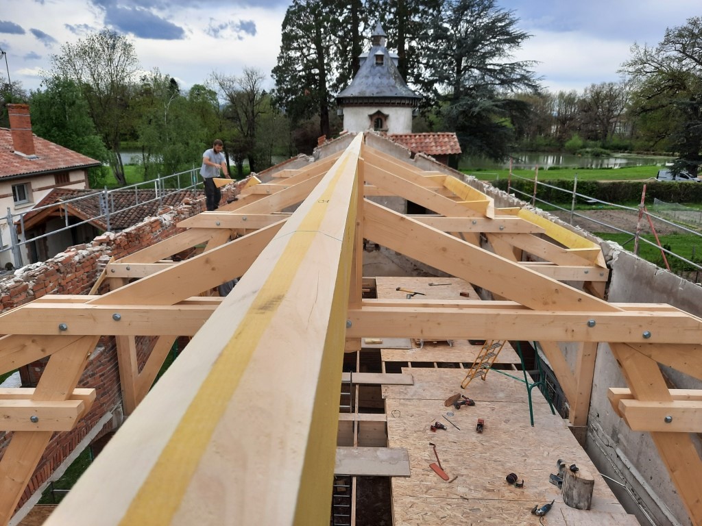 ILEX Construction est intervenu sur ce projet pour réaliser la rénovation de la charpente pour la création d’une partie « nuit » toute la partie surélévation en murs en ossature bois, la charpente, la couverture, la zinguerie, le bardage extérieur et la menuiserie extérieure (Fenêtres et Volets battants).