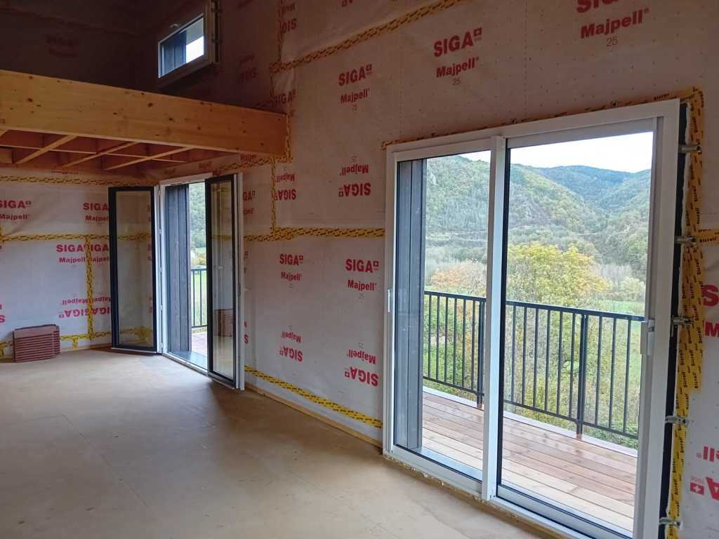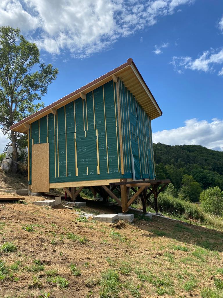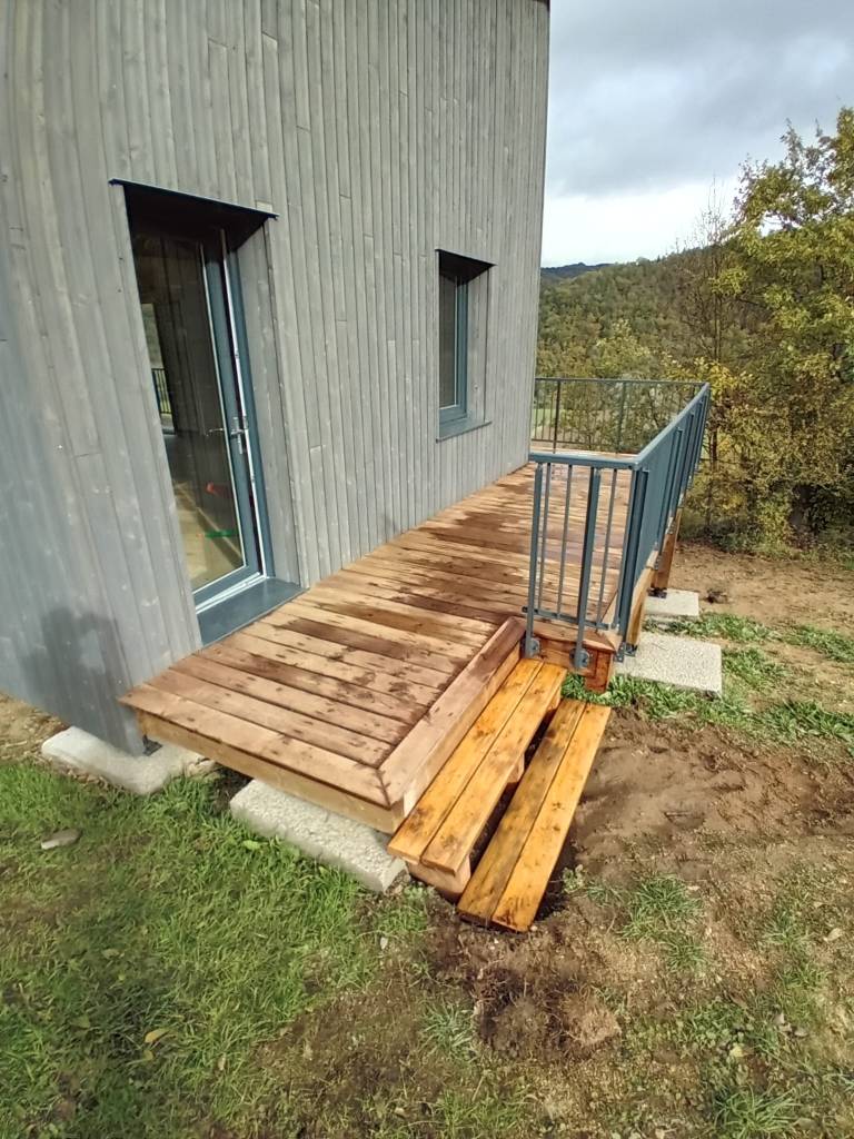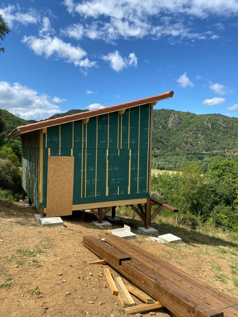 L’intervention pour la pose de menuiseries et du bardage extérieur est en cours, ainsi que la finalisation de la Terrasse.