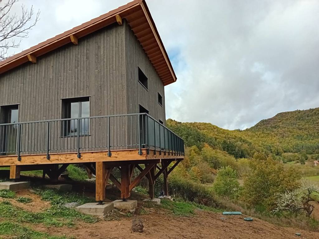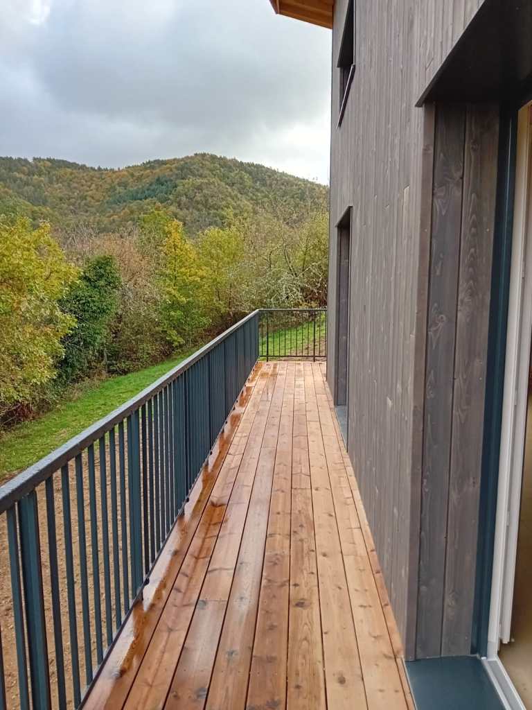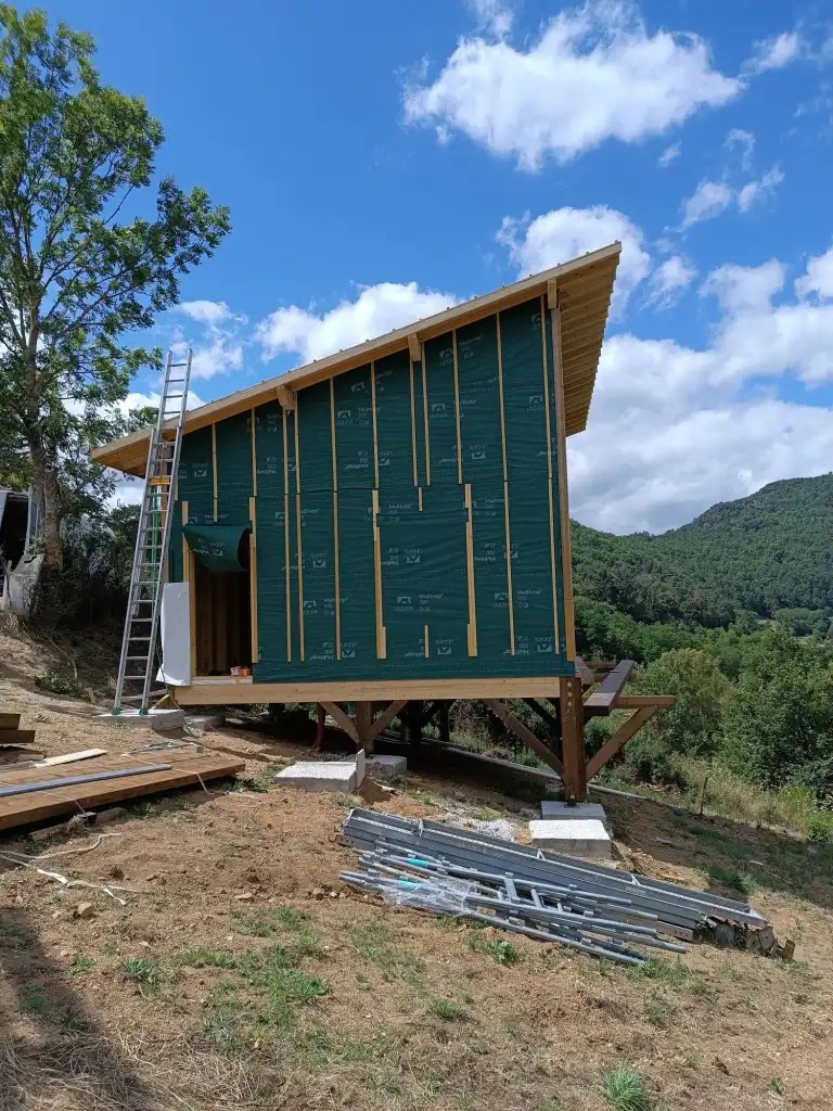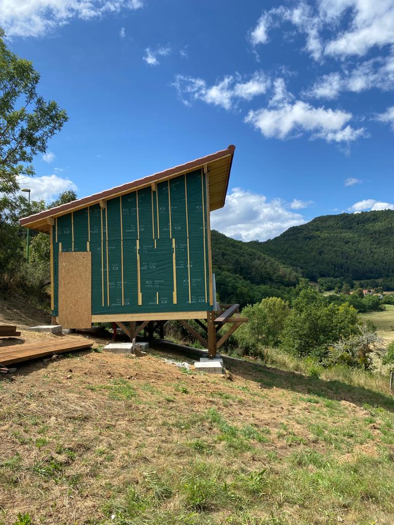 L’intervention pour la pose de menuiseries et du bardage extérieur est en cours, ainsi que la finalisation de la Terrasse.
